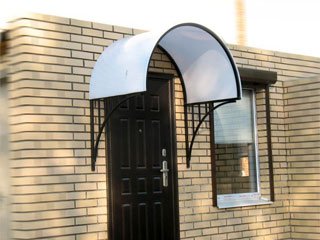 Форма и стиль козырька должна сочетаться с архитектурой здания, металлические козырьки могут быть прямоугольными, односкатными, наклонными, арочными, дугообразными, двускатными. Конструкция металлического козырька должна быть очень надежна и функциональна, при наполнении конструкции козырька рисунком из прутка, квадрата и полосы сделает металлический козырек еще жестче и прочнее.